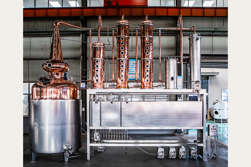 類蒸餾利用酒精的沸點(78.5℃)和水的沸點(100℃)不同,將凈化酒液并除去稀釋酒的成分,從而增加酒精濃度。我們提供提供個性化定制蒸餾設備,以滿足不同客戶的需求。